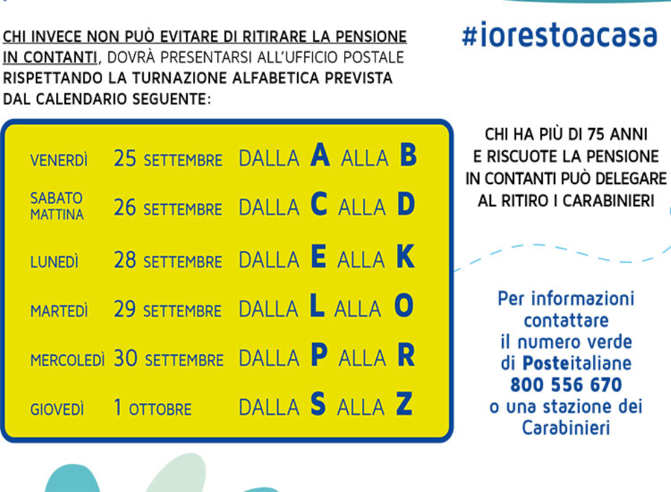 Il calendario per il ritiro alla Posta. Ecco il calendario per il ritiro della pensione di settembre agli. Basandoci sullorganizzazione del calendario dei mesi precedenti possiamo ragionevolmente ipotizzare che le pensioni di settembre 2020 potranno essere ritirate presso gli uffici postali a partire dal 25 agosto 2020. Il pagamento in contanti sará disponibile per 60 giorni e si potrà riscuoterlo dal 28 novembre.